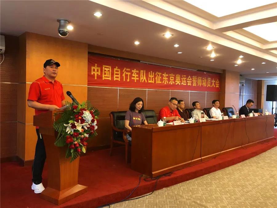 近日,东京奥运会中国体育代表团名单正式公布,代表团总人数为777人,其中运动员431人,教练员、领队、科医人员等运动队工作人员307人,团部工作人员39人。本届东京奥运会是中国体育代表团境外参赛规模最大的一届奥运会。其中自行车项目代表团由17人组成,运动员9人、工作人员8人。7月14日,中国自行车队出征东京奥运会誓师动员大会在老山训练基地举行,乐鱼体育leyu体育副董事长卞青峰受邀出席并致辞。