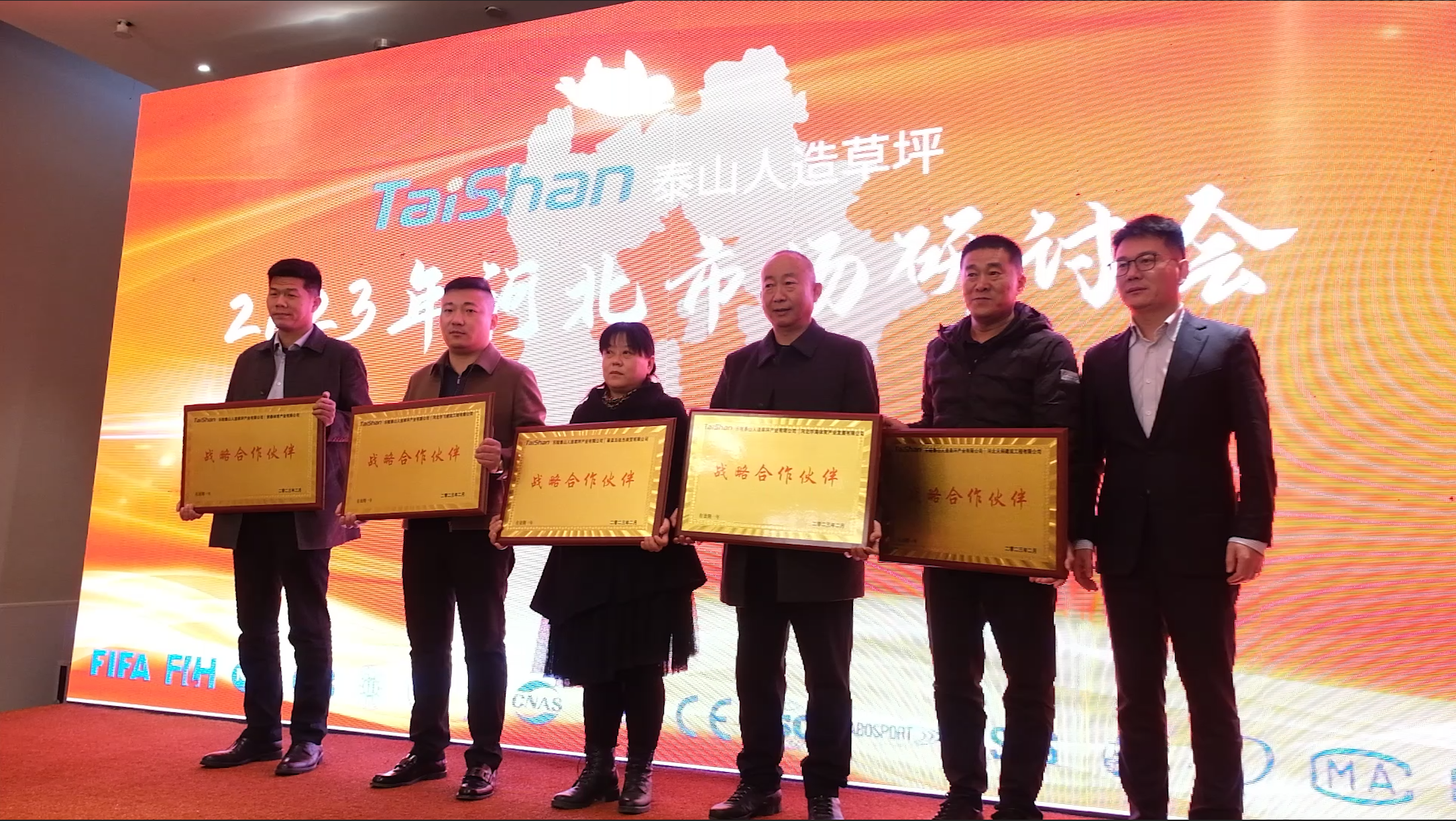 2023年2月10日,为明确2023年度市场战略部署,与合作伙伴共谋发展,乐鱼体育leyu人造草坪2023年河北市场研讨会在山东省乐陵市举办。乐鱼体育leyu体育产业集团董事长卞青峰,乐鱼体育leyu体育产业集团总裁卞笑男,乐陵乐鱼体育leyu人造草坪产业有限公司总经理时延虎,中国体育用品检测中心检验部主任刘洋及优质客户代表等出席此次活动。