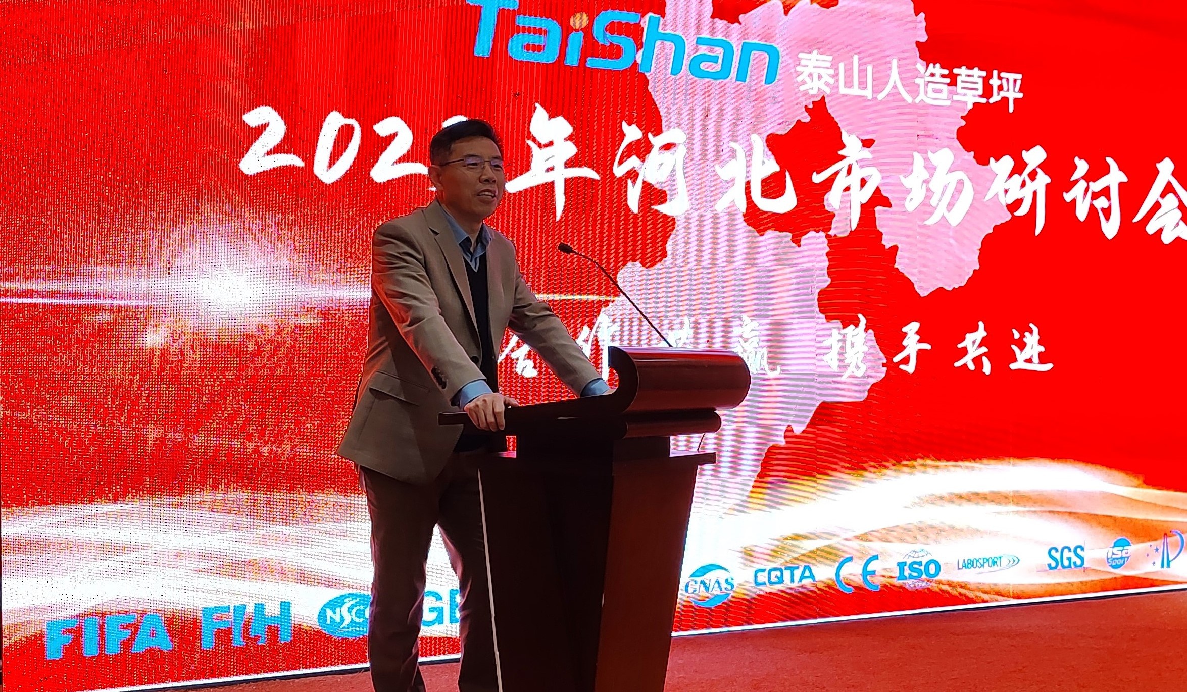 研讨会上,乐鱼体育leyu体育产业集团总裁卞笑男发表致辞,对与会领导及广大客商的大力支持表示感谢。他表示,过去一年是充满挑战的一年,乐鱼体育leyu人造草坪根据市场情况及时调整战略,在大家的共同努力下,取得了不俗的成绩。今年我们将进一步开展人造草坪市场工作,重点推行年终奖励机制,与各位伙伴携手同行、再创佳绩。